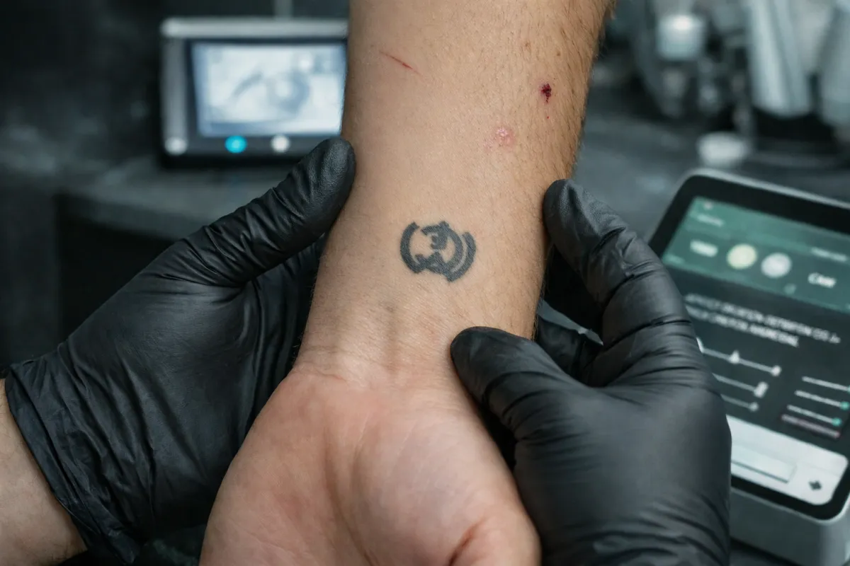 para fragmentar la tinta sin dañar la piel.